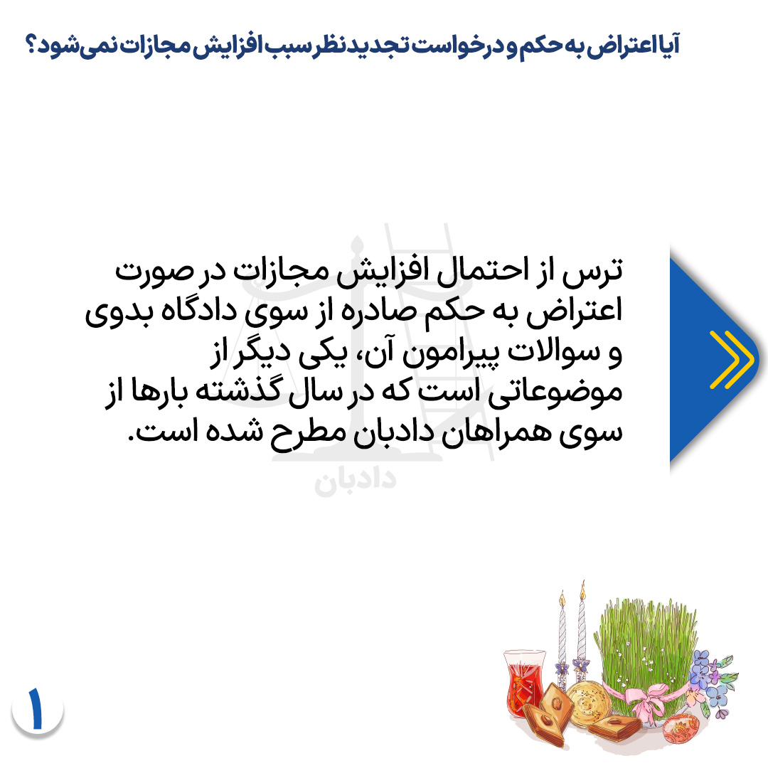 ترس از احتمال افزایش مجازات در صورت اعتراض به حکم صادره از سوی دادگاه بدوی و سوالات پیرامون آن، یکی دیگر از موضوعاتی است که در سال گذشته بارها از سوی همراهان دادبان مطرح شده است.