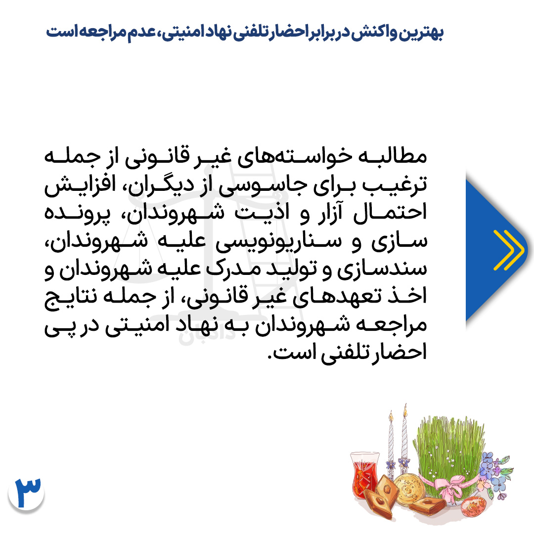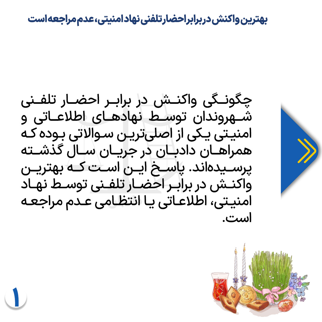 در پاسخ به این سوال باید گفت بهترین واکنش در برابر احضار تلفنی توسط نهاد امنیتی، اطلاعاتی یا انتظامی عدم مراجعه است.