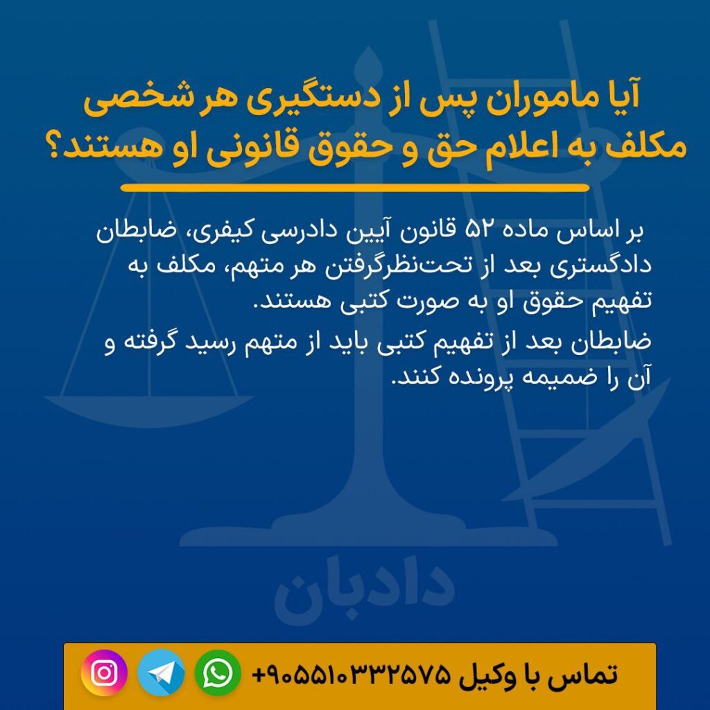 آیا ماموران پس از دستگیری هر شخصی مکلف به اعلام حق و حقوق قانونی او هستند؟