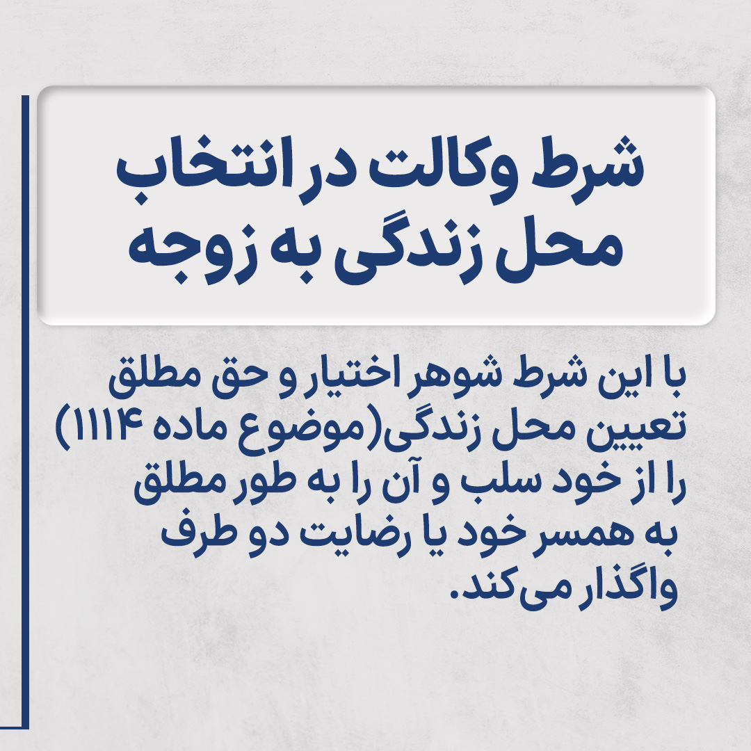 • شرط وکالت در انتخاب محل زندگی به زوجه: