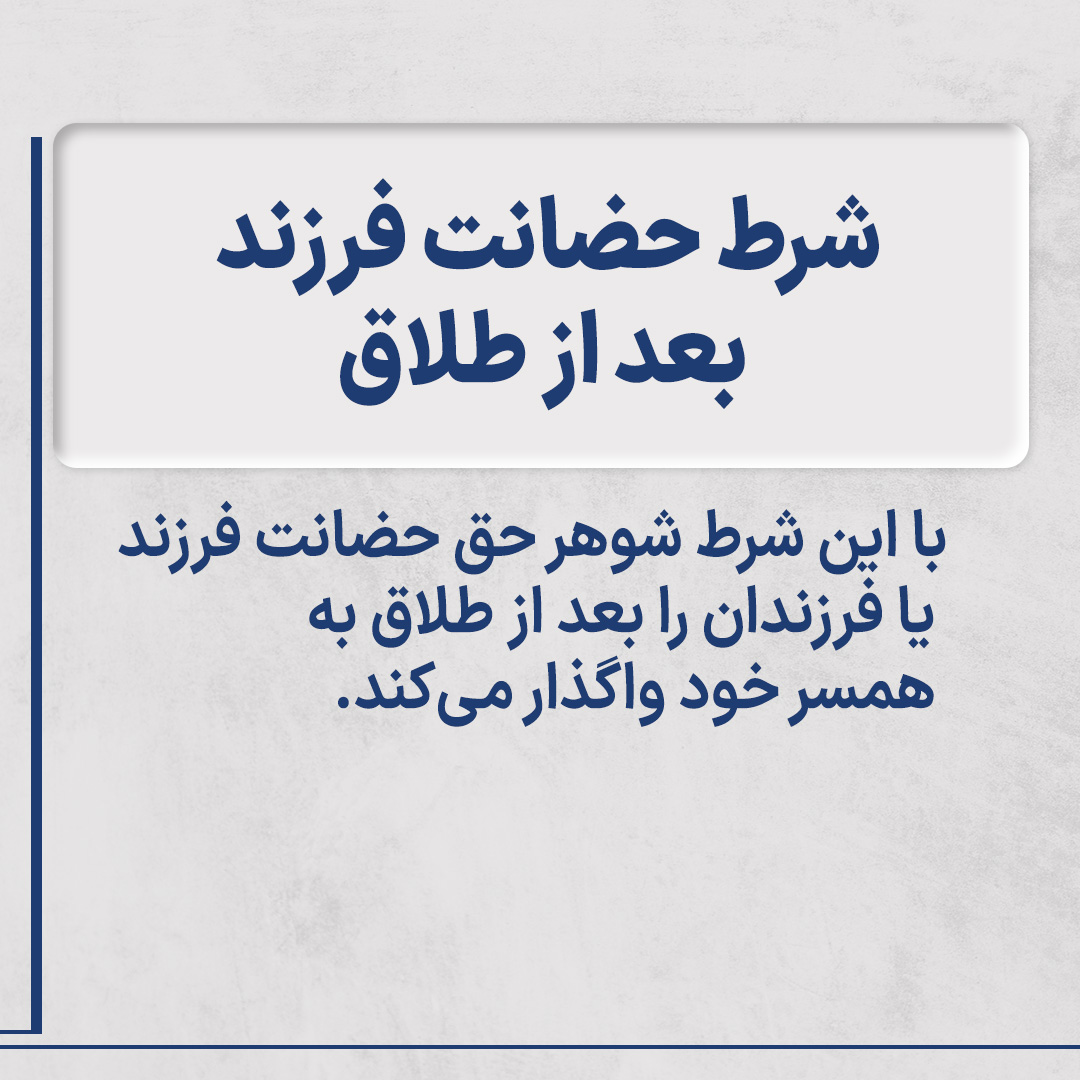 با این شرط شوهر حق حضانت فرزند یا فرزندان را بعد از طلاق به همسر خود واگذار می‌کند.
