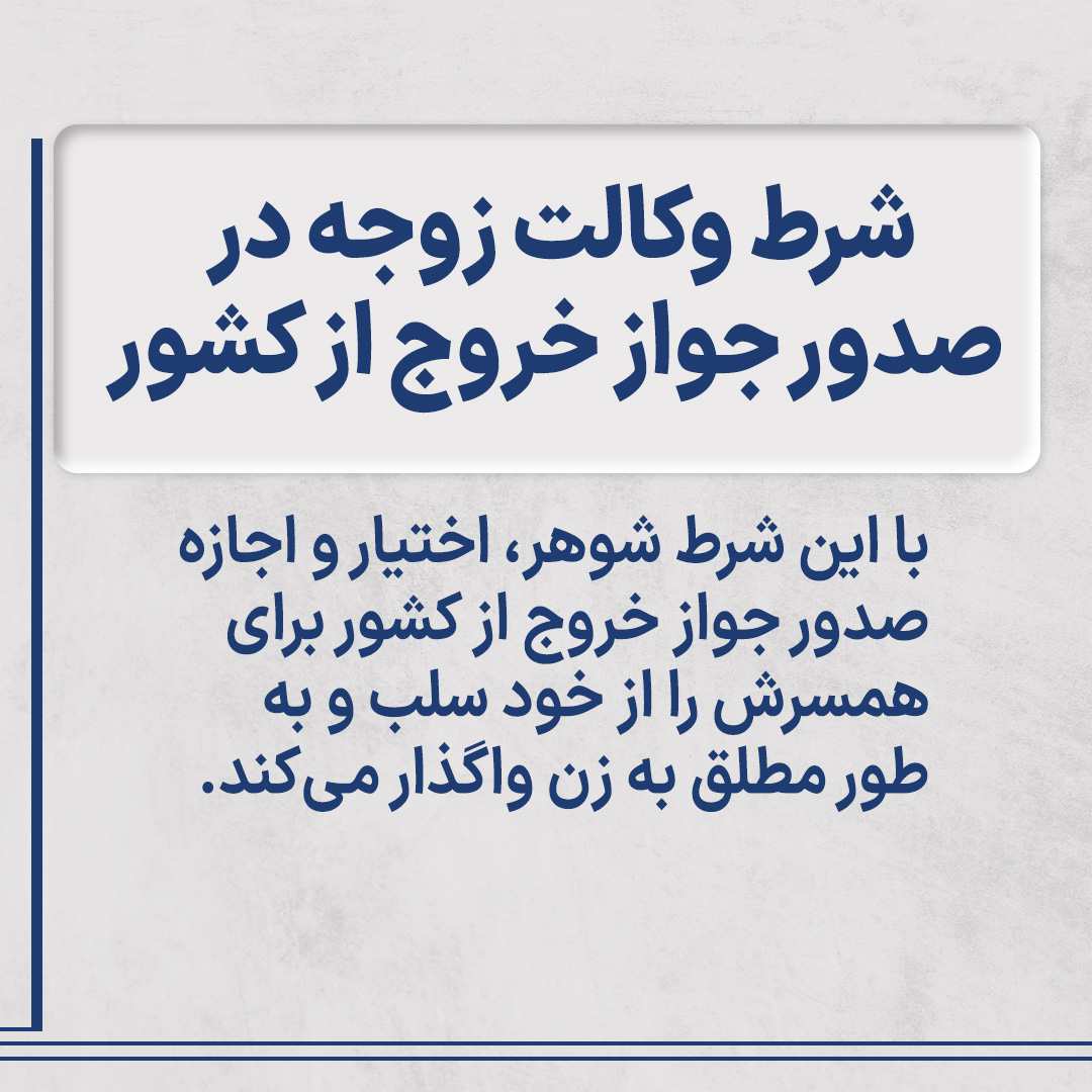 –  شرط وکالت زوجه در صدور جواز خروج از کشور