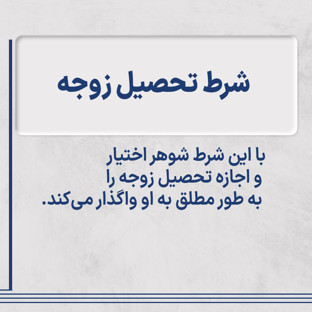 با این شرط شوهر اختیار و اجازه تحصیل زوجه را به طور مطلق به او واگذار می‌کند.