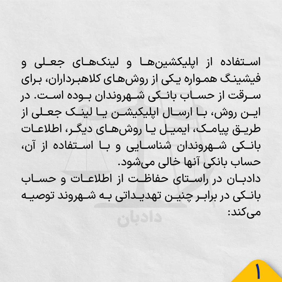 دادبان در راستای حفاظت از اطلاعات و حساب بانکی در برابر چنین تهدیداتی به شهروند توصیه می‌کند:
