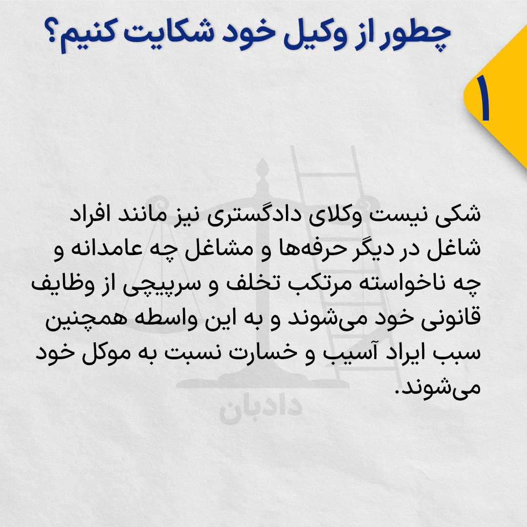شکی نیست وکلای دادگستری نیز مانند افراد شاغل در دیگر حرفهها و مشاغل چه عامدانه و چه ناخواسته مرتکب تخلف و سرپیچی از وظایف قانونی خود میشوند و به این واسطه همچنین سبب ایراد آسیب و خسارت نسبت به موکل خود میشوند.