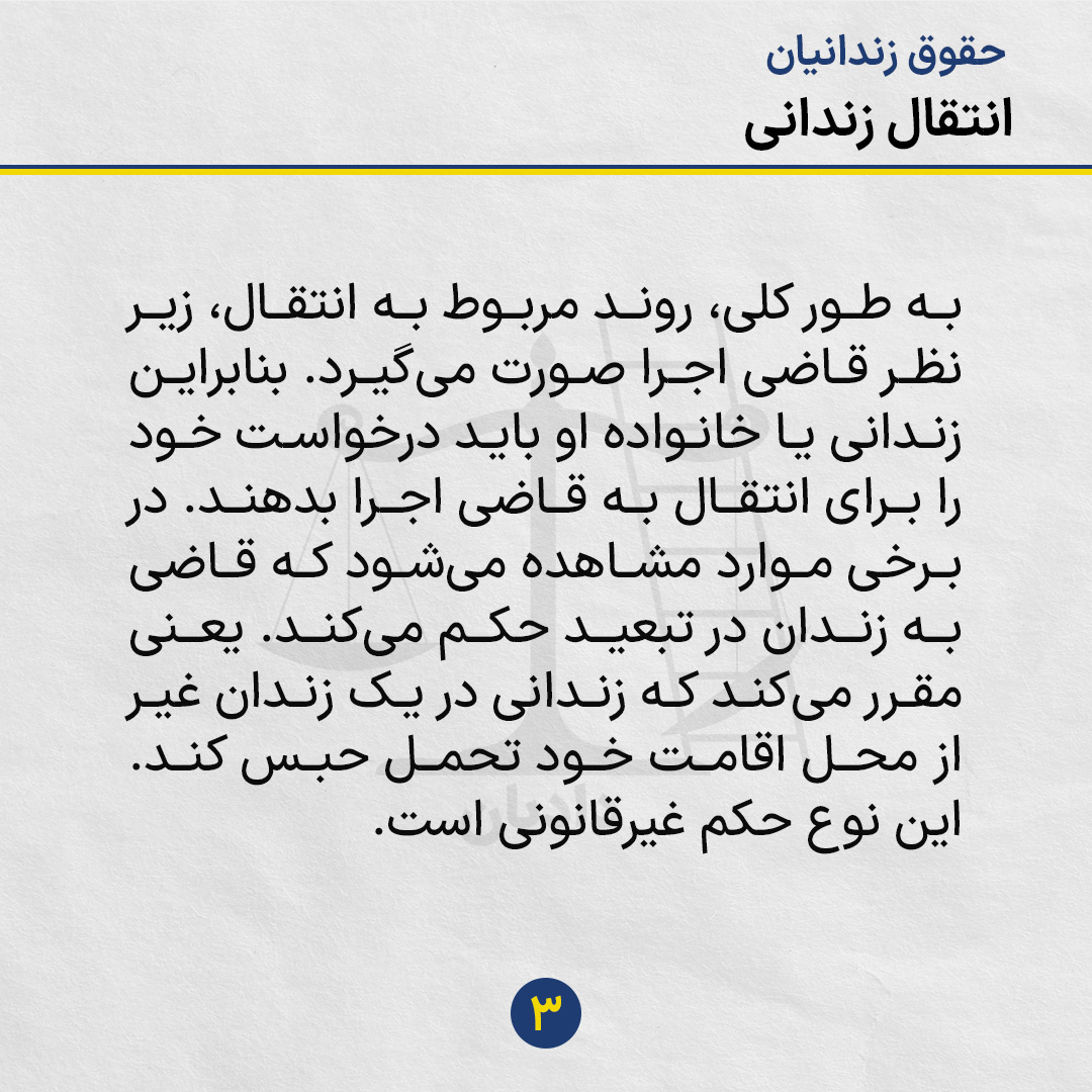 به طور کلی، روند مربوط به انتقال، زیر نظر قاضی اجرا صورت میگیرد. بنابراین زندانی یا خانواده او باید درخواست خود را برای انتقال به قاضی اجرا بدهند. در برخی موارد مشاهده میشود که قاضی به زندان در تبعید حکم میکند. یعنی مقرر میکند که زندانی در یک زندان غیر از محل اقامت خود تحمل حبس کند. این نوع حکم غیرقانونی است.