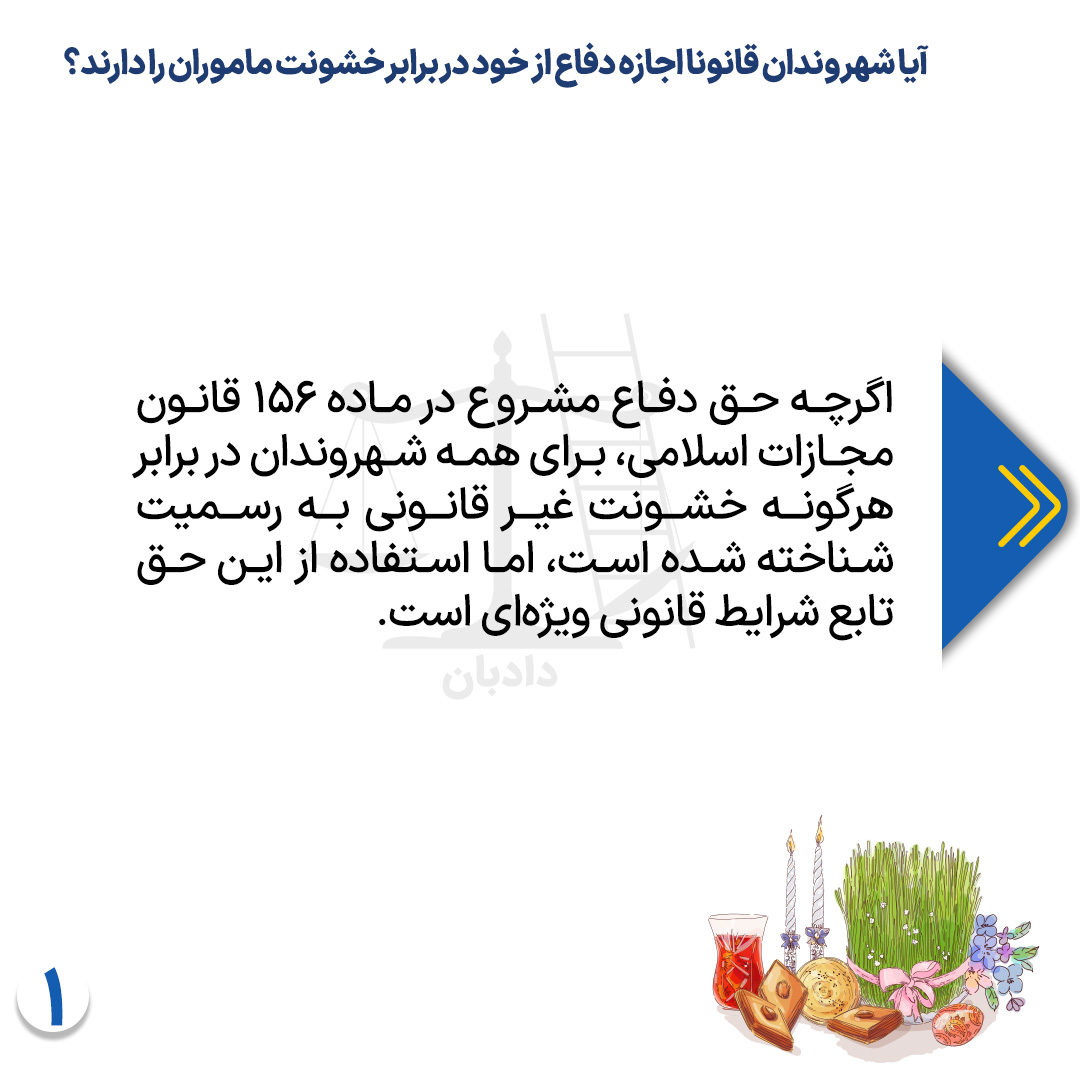 مجوز قانونی شهروندان برای دفاع از خود در برابر خشونت ماموران امنیتی و انتظامی، آمران به معروف و حجاببانها از دیگر سوالاتی است که بارها در سال گذشته از دادبان پرسیده شده است.