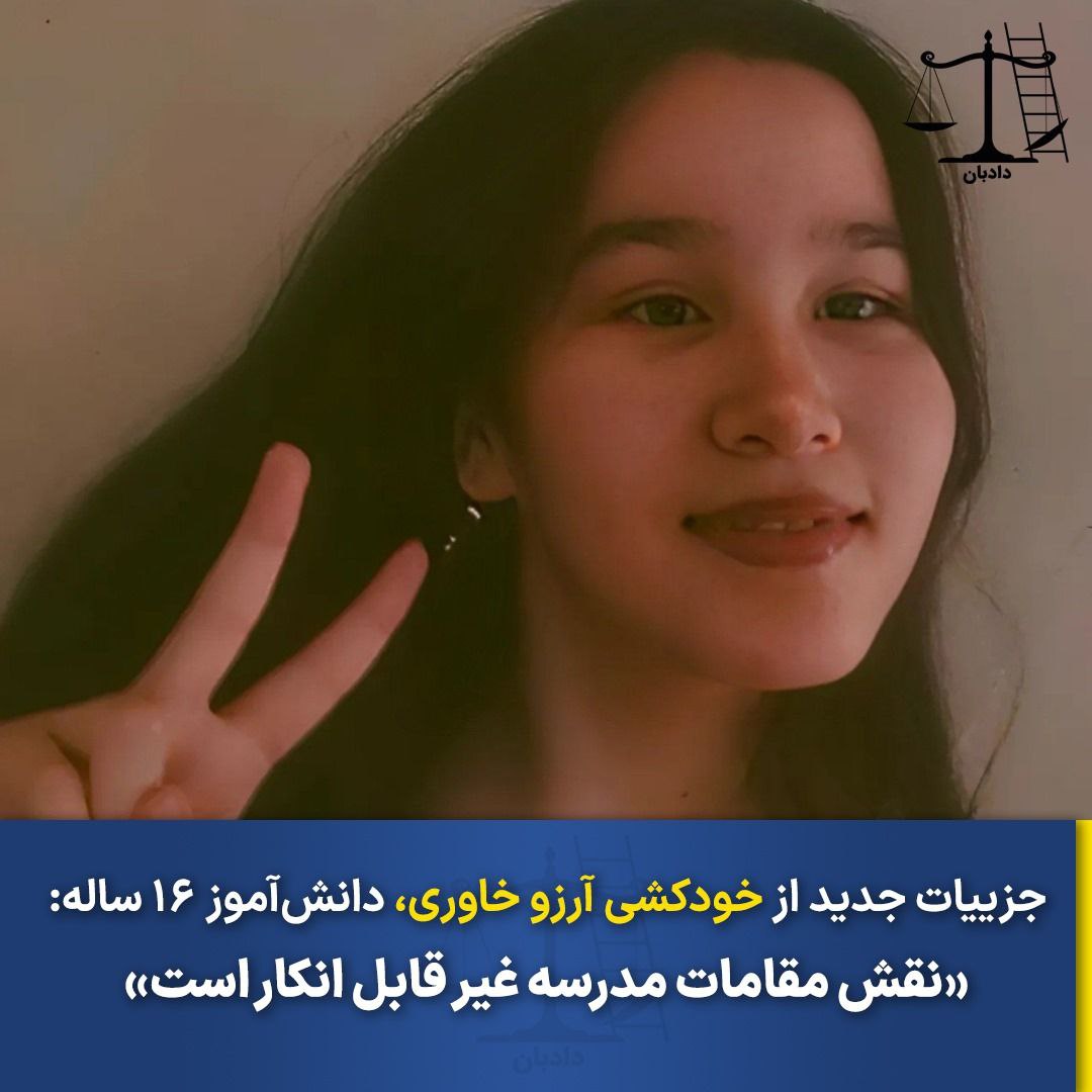 دادبان به جزییات بیشتری از خودکشی آرزو خاوری، دختر ۱۶ ساله در ۱۳ آبان ماه جاری در شهرری تهران دست یافته است.