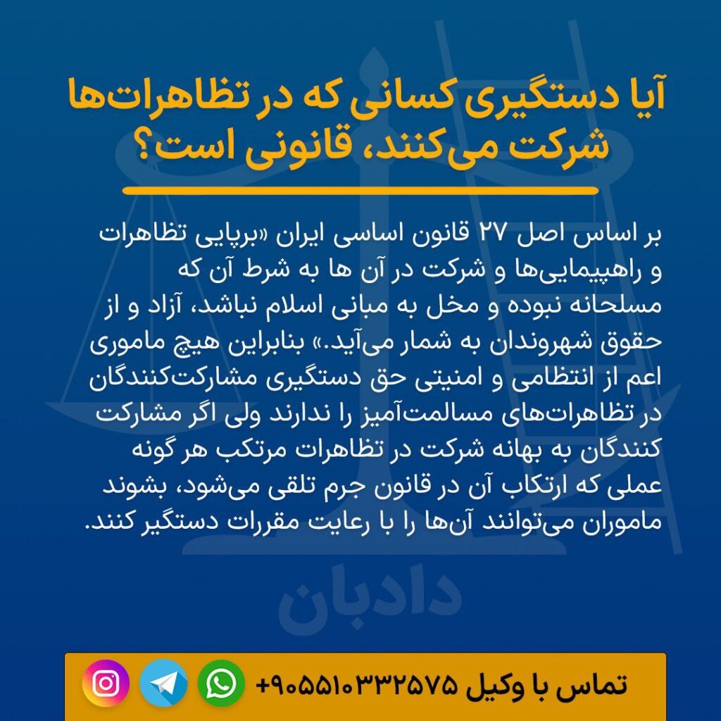 آیا دستگیری کسانی که در تظاهراتها شرکت میکنند، قانونی است؟