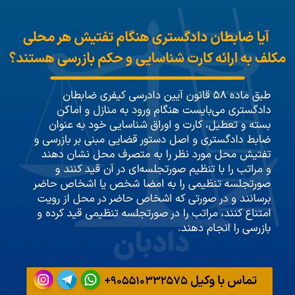 آیا ضابطان دادگستری هنگام بازرسی و تفتیش هر محلی مکلف به ارائه کارت شناسایی و حکم بازرسی هستند؟