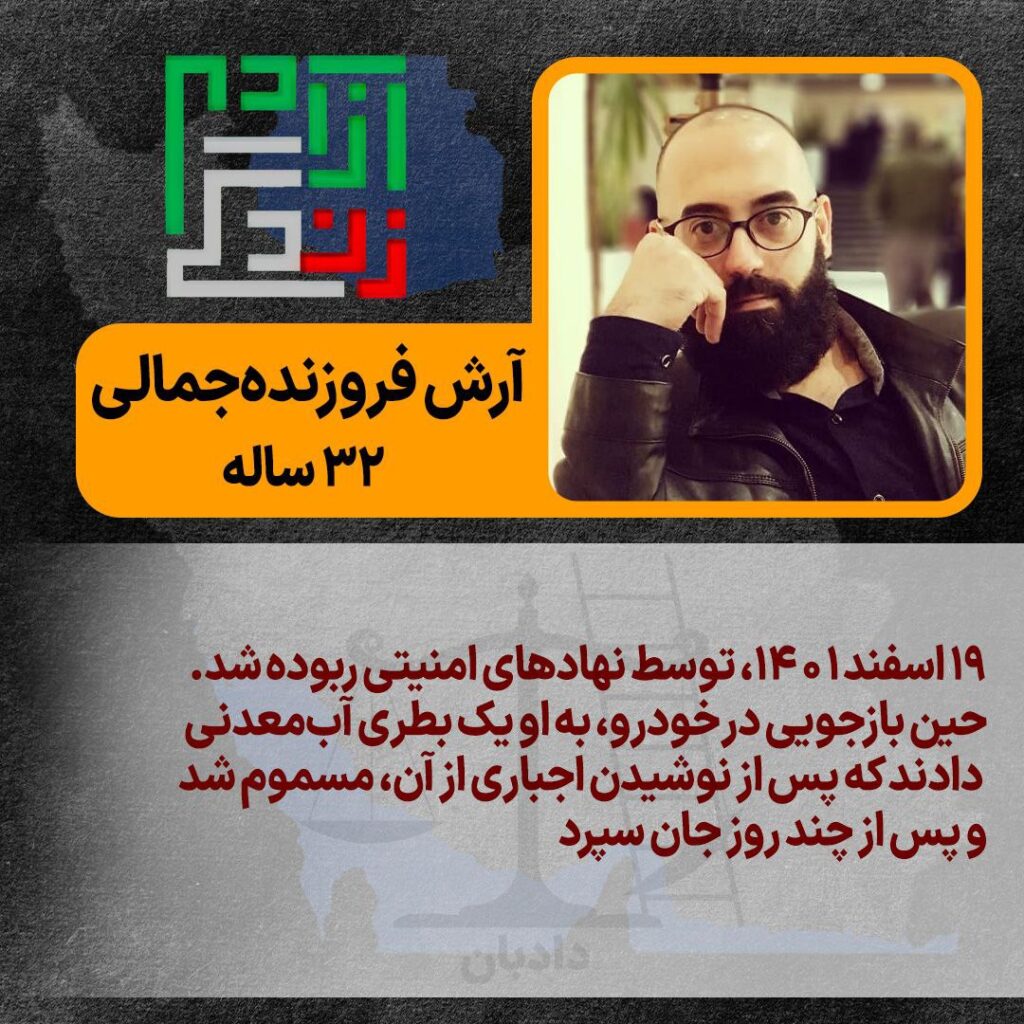 آرش فروزندهجمالی، معترضی که پس از نوشیدن اجباری آب در حین بازجویی، مسموم شد و جانباخت