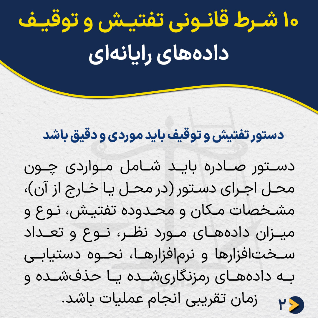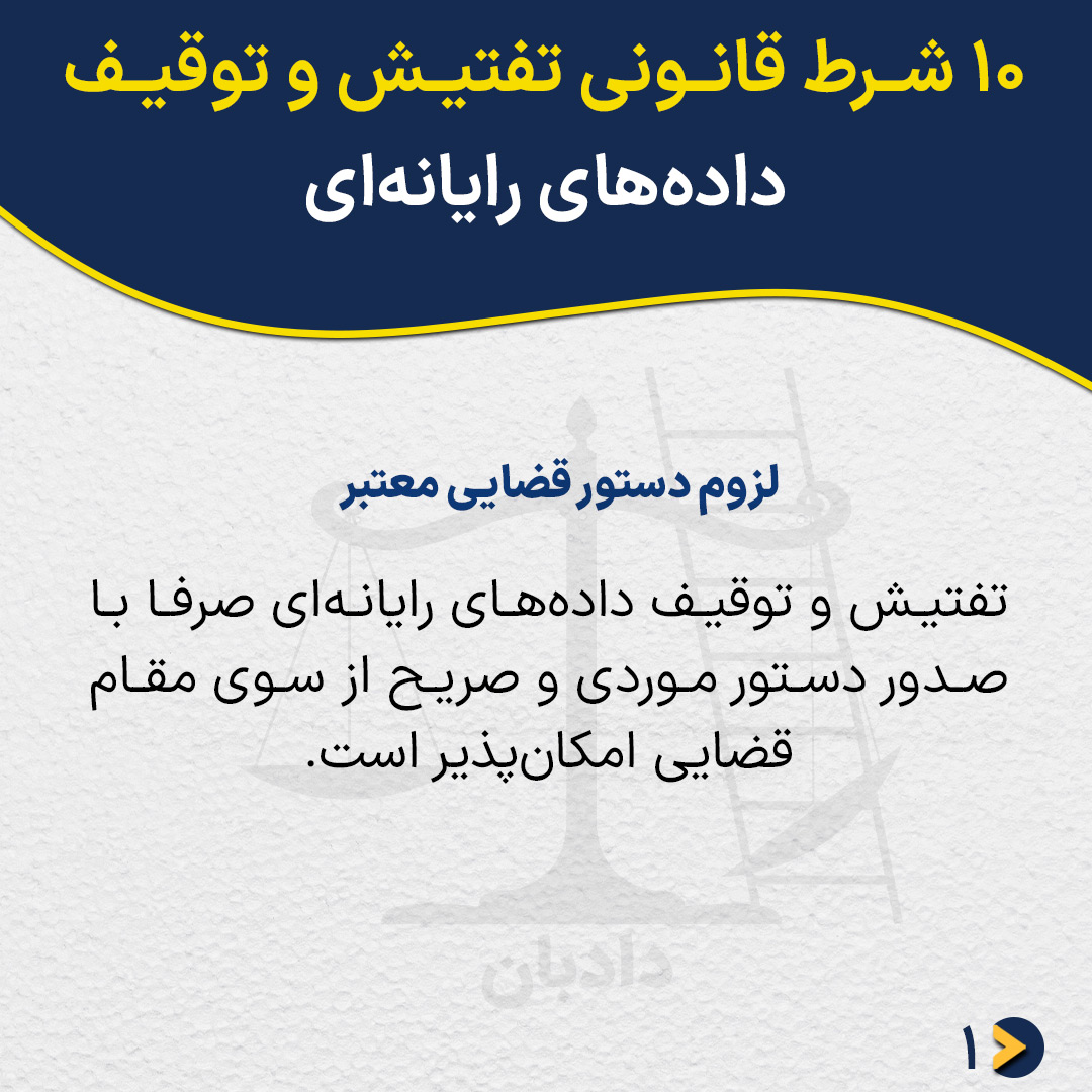تفتیش و توقیف دادههای رایانهای صرفا با صدور دستور موردی و صریح از سوی مقام قضایی امکانپذیر است.