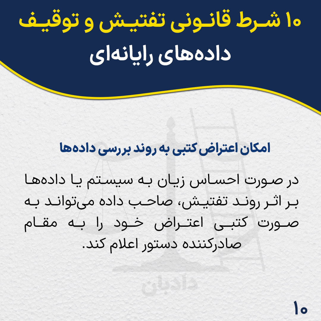 ۱۰- امکان اعتراض کتبی به روند بررسی دادهها