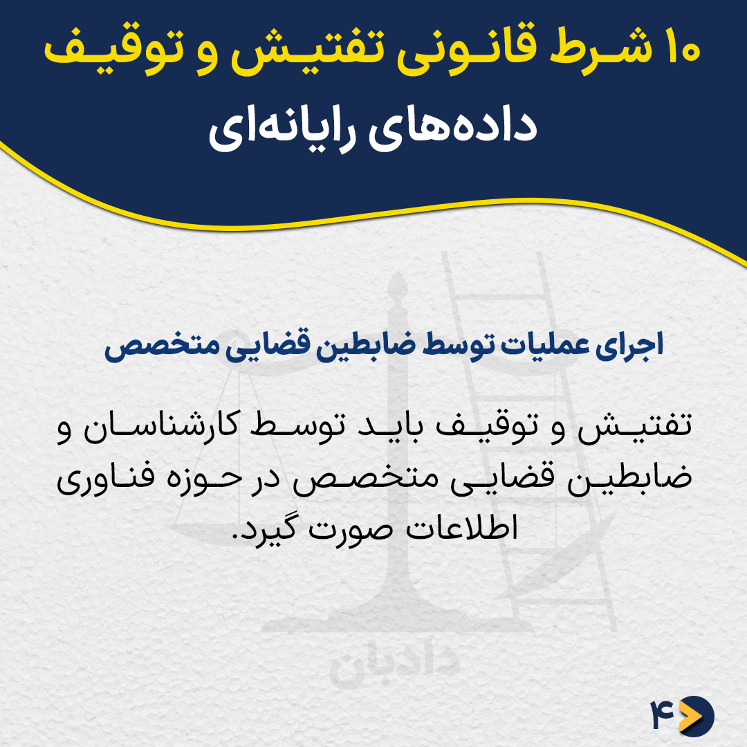 ۴- اجرای عملیات توسط ضابطین قضایی متخصص