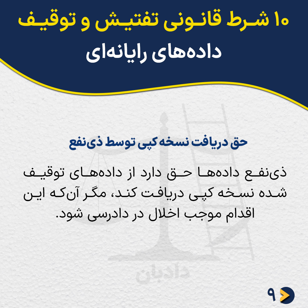 ذینفع دادهها حق دارد از دادههای توقیفشده نسخه کپی دریافت کند، مگر آنکه این اقدام موجب اخلال در دادرسی شود.