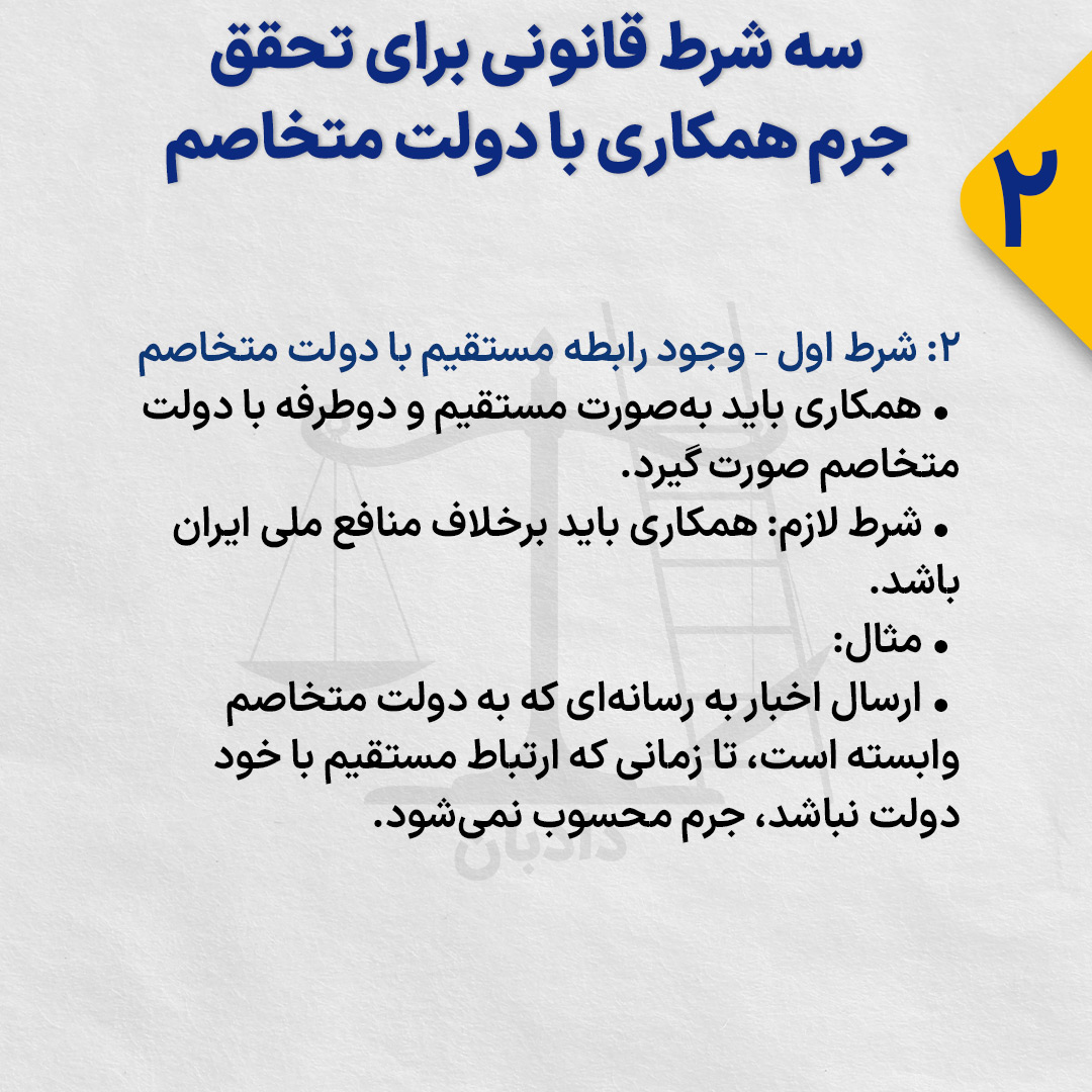 • شرط لازم: همکاری باید برخلاف منافع ملی ایران باشد.