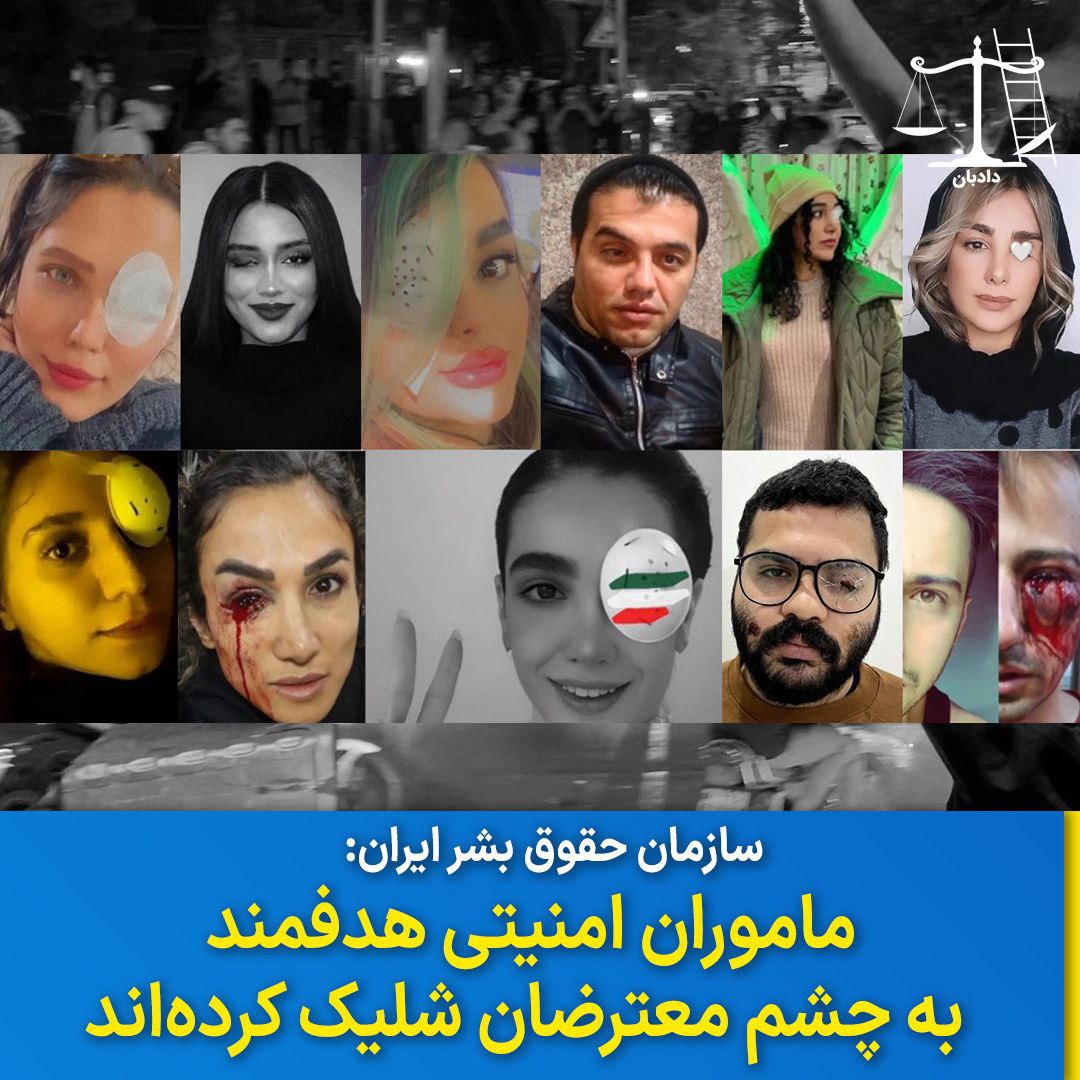 به گزارش دادبان به نقل از سازمان حقوق بشر ایران:  با توجه به کثرت گزارش‌های مرتبط با شلیک هدفمند مأموران امنیتی به سر و صورت معترضان که منجر به نابینا شدنِ تعداد بسیاری از شهروندان (به‌ویژه زنان جوان) شده است و همچنین با در نظر گرفتن این موضوع که شلیک به صورت و چشم افراد شرکت‌کننده در تجمعات اعتراضی ماه‌های اخیر، در بیشتر شهرهای ایران رخ داده است، سازمان حقوق بشر ایران، این اقدام غیر انسانی و فراقانونی نهادهای امنیتی ایران در سرکوب اعتراضات مردمی را امری سیستماتیک ارزیابی می‌کند.
