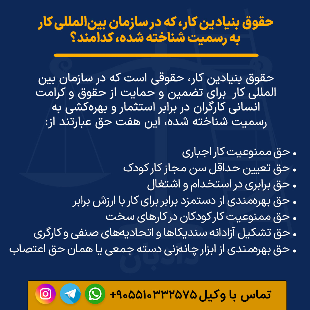 حقوق بنیادین کار، حقوقی است که در سازمان بینالمللی کار برای تضمین و حمایت از حقوق و کرامت انسانی کارگران در برابر استثمار و بهرهکشی به رسمیت شناخته شده، این هفت حق عبارتند از: