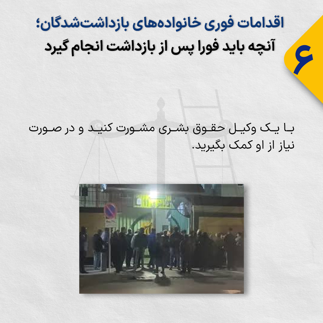 با یک وکیل حقوق بشری مشورت کنید و در صورت نیاز از او کمک بگیرید.