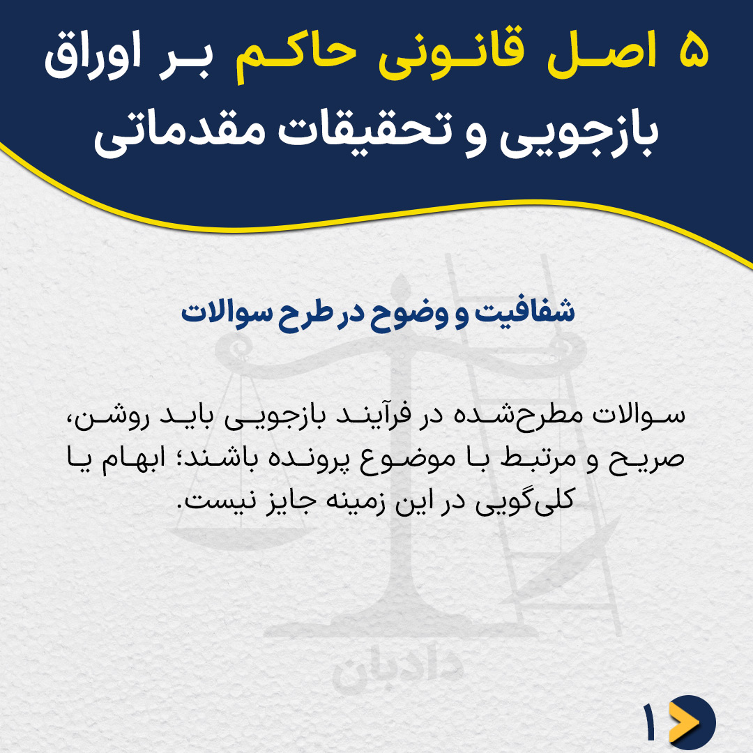 سوالات مطرحشده در فرآیند بازجویی باید روشن، صریح و مرتبط با موضوع پرونده باشند؛ ابهام یا کلیگویی در این زمینه جایز نیست.