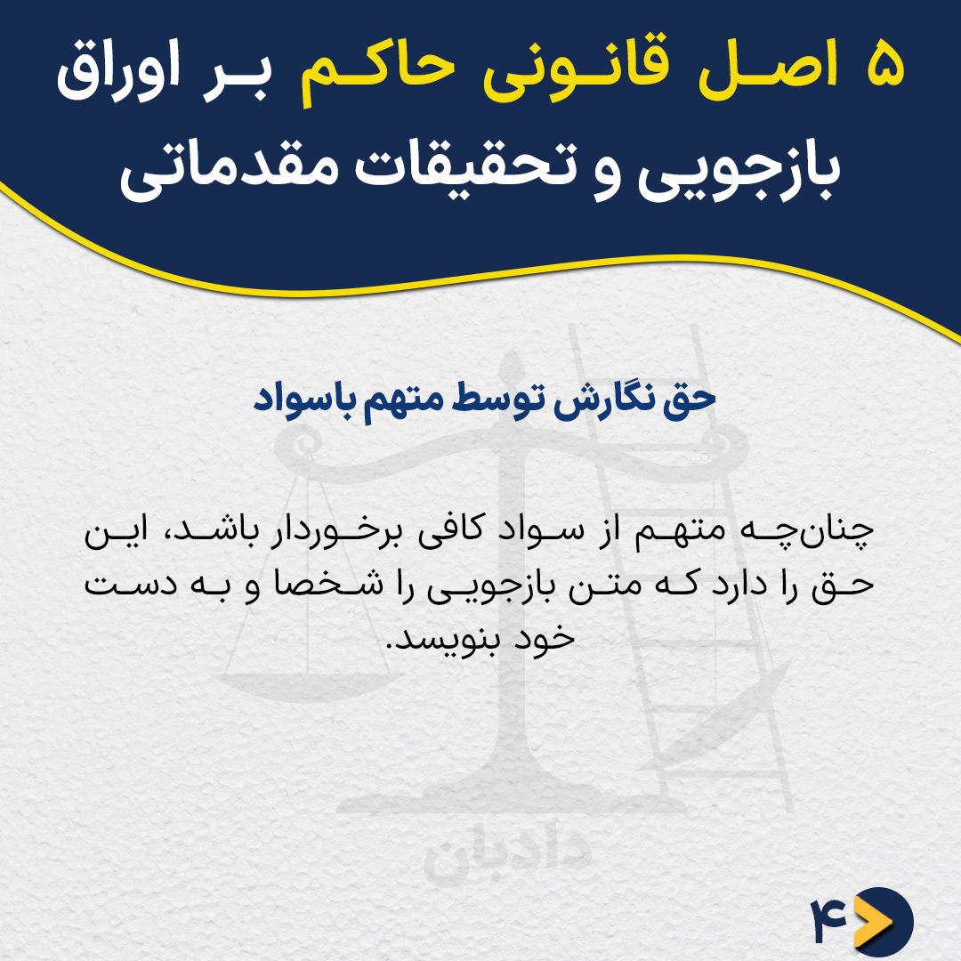 چنانچه متهم از سواد کافی برخوردار باشد، این حق را دارد که متن بازجویی را شخصا و به دست خود بنویسد.