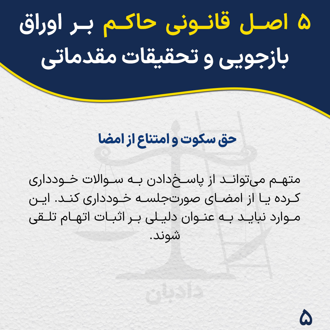 متهم میتواند از پاسخدادن به سوالات خودداری کرده یا از امضای صورتجلسه خودداری کند. این موارد نباید به عنوان دلیلی بر اثبات اتهام تلقی شوند.
