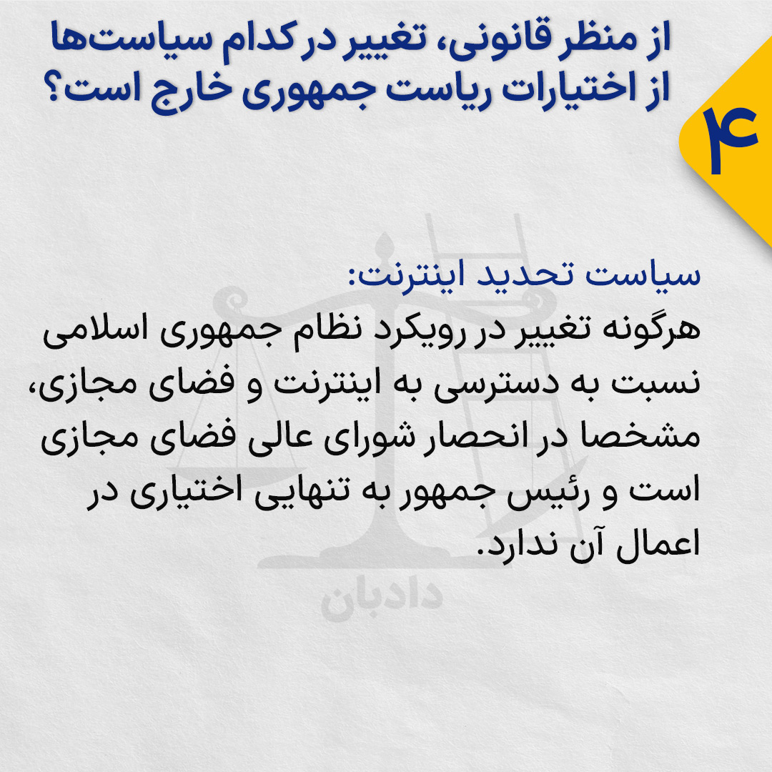 هرگونه تغییر در رویکرد نظام جمهوری اسلامی نسبت به دسترسی به اینترنت و فضای مجازی، مشخصا در انحصار شورای عالی فضای مجازی است و رئیس جمهور به تنهایی اختیاری در اعمال آن ندارد.