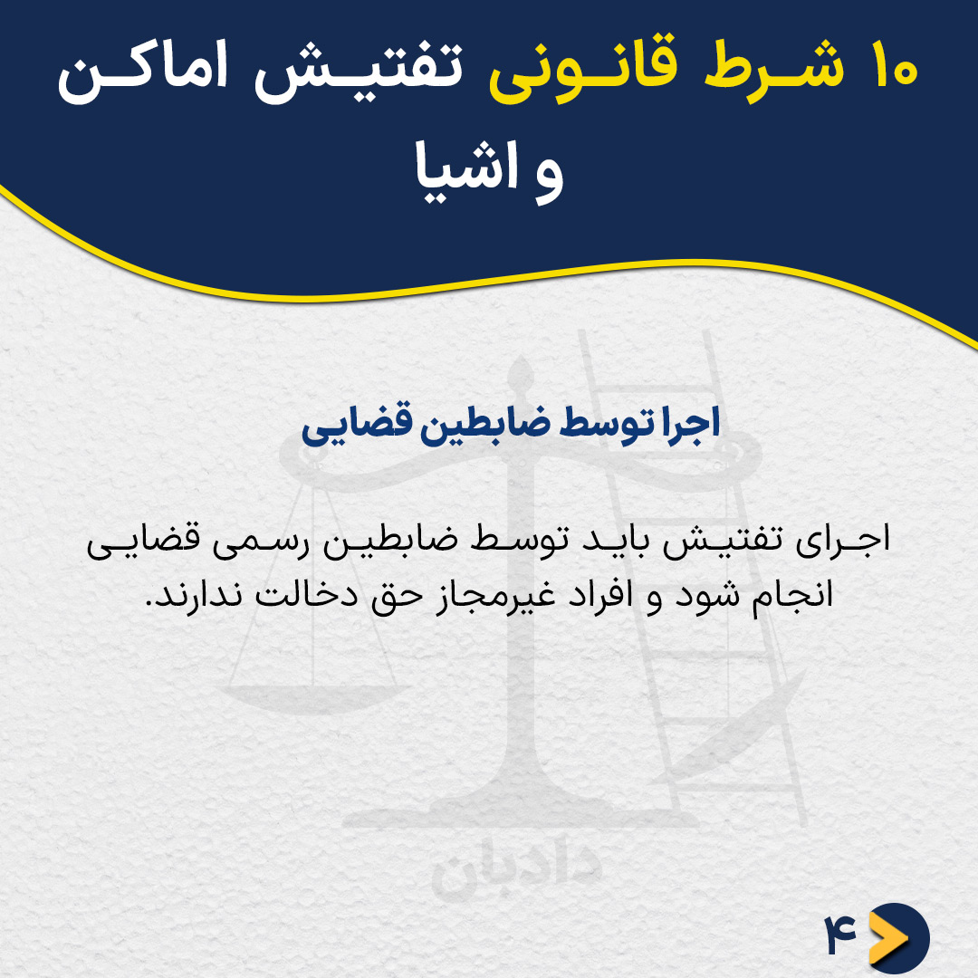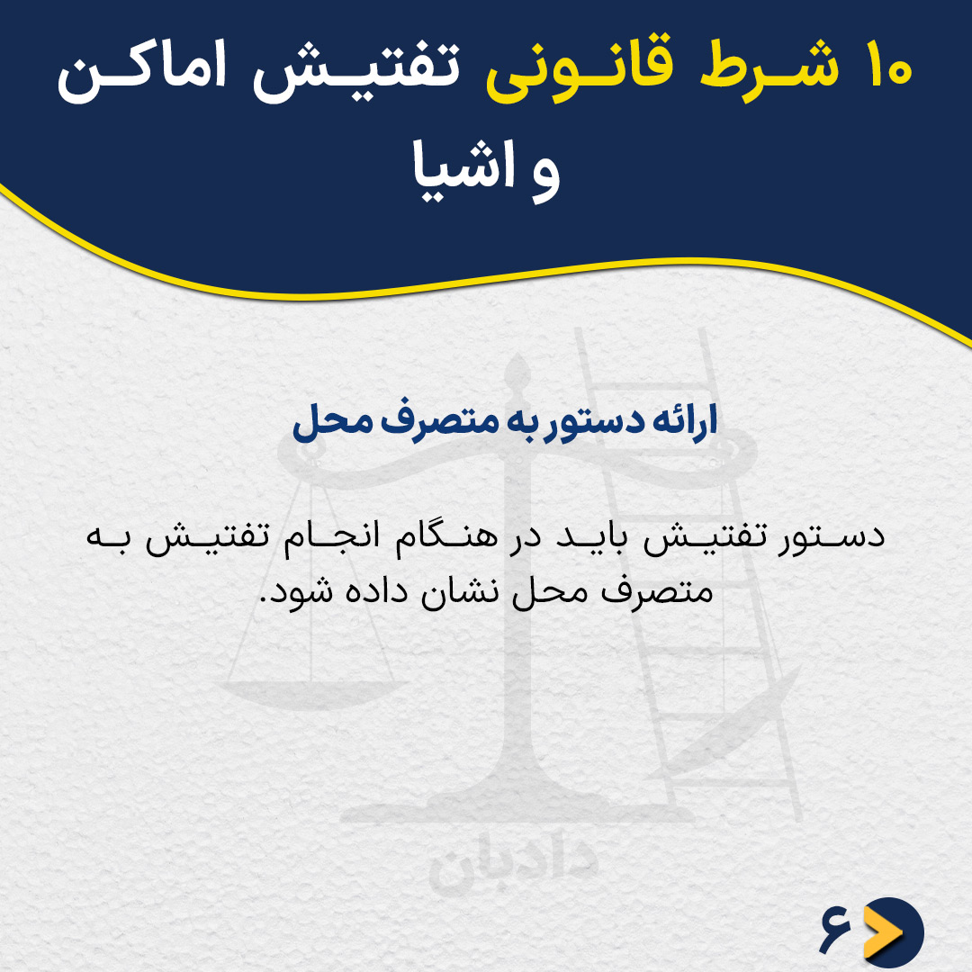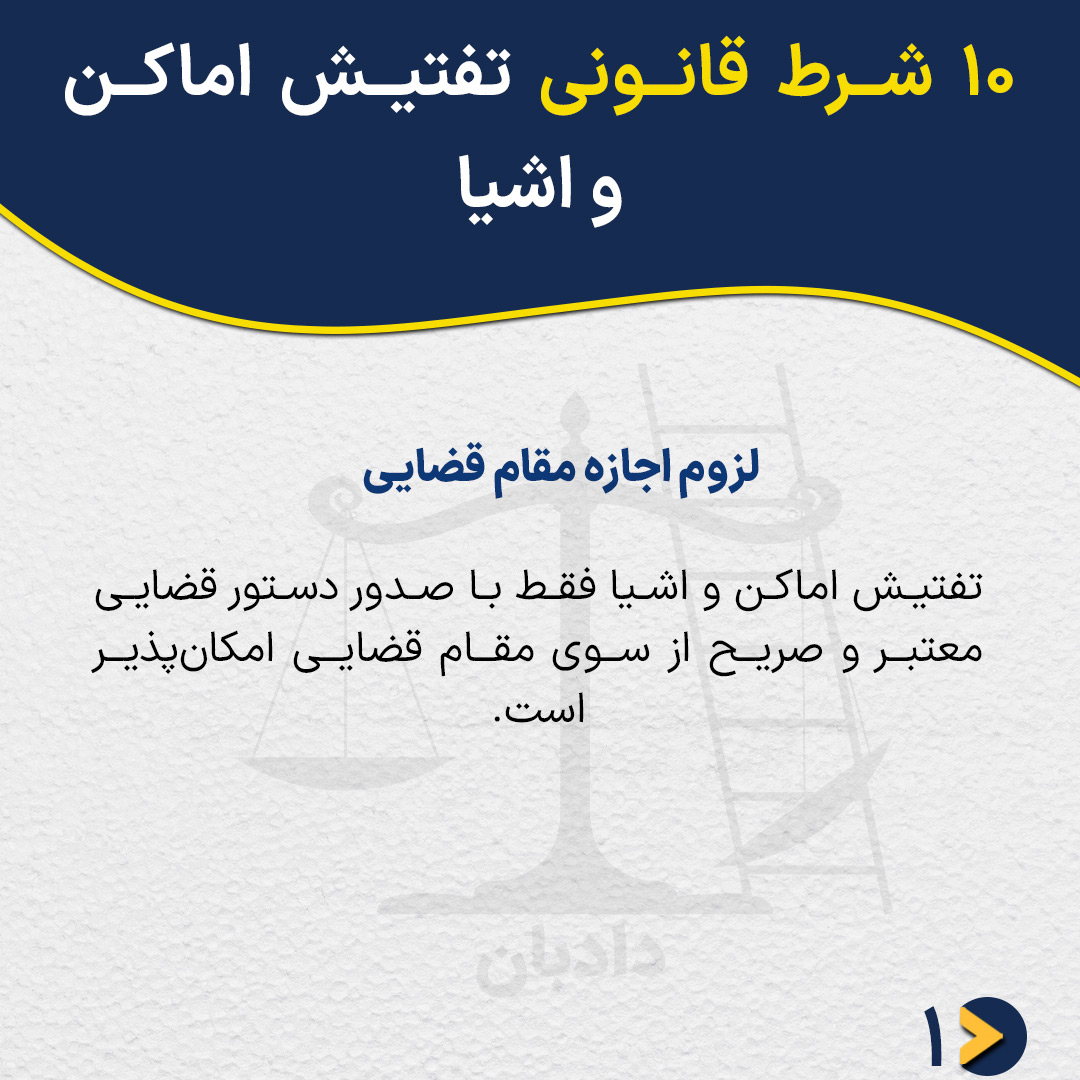 تفتیش اماکن و اشیا فقط با صدور دستور قضایی معتبر و صریح از سوی مقام قضایی امکانپذیر است.