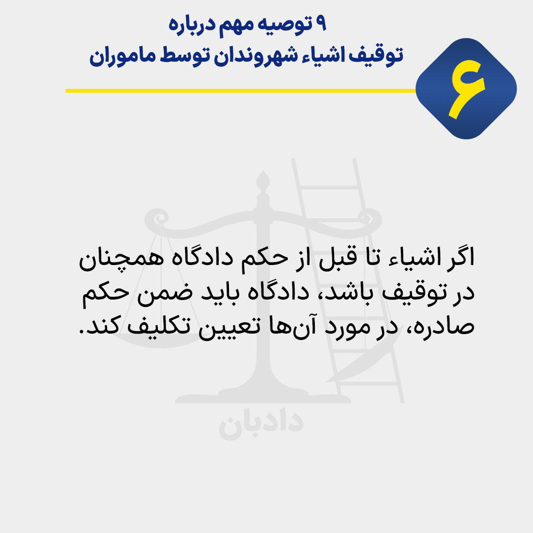 – اگر اشیاء تا قبل از حکم دادگاه همچنان در توقیف باشد، دادگاه باید ضمن حکم صادره، در مورد آنها تعیین تکلیف کند.