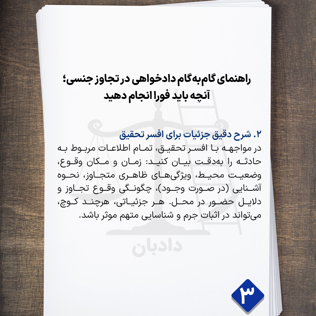 ۲. شرح دقیق جزئیات برای افسر تحقیق