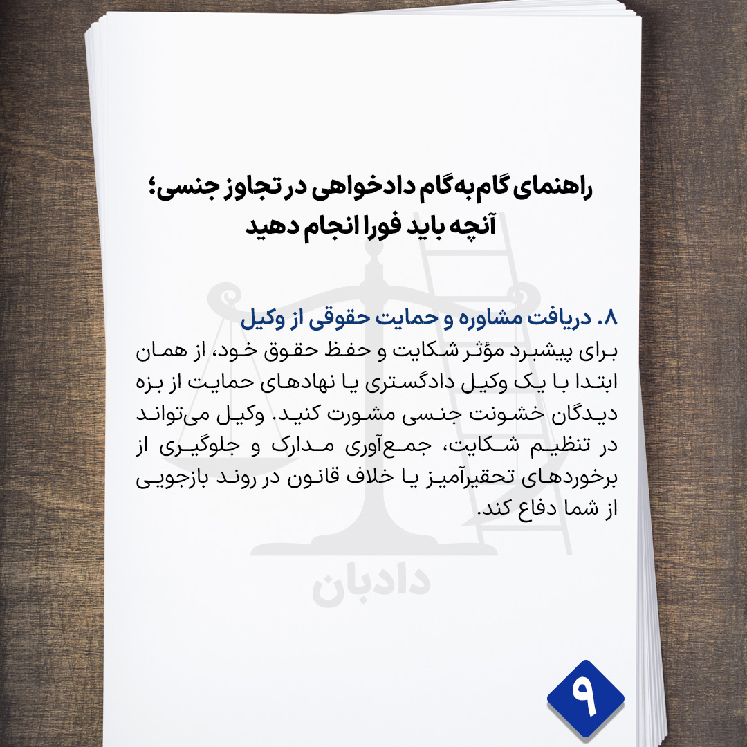 ۸. دریافت مشاوره و حمایت حقوقی از وکیل