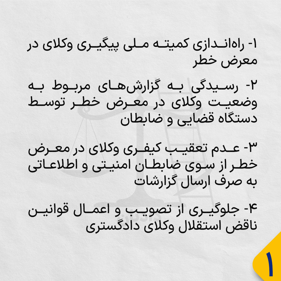 ۱- راهاندازی کمیته ملی پیگیری وکلای در معرض خطر